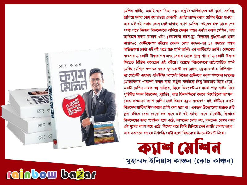 মেশিন লার্নিং, এআই আর নিত্য নতুন প্রযুক্তি আবিষ্কারের এই যুগে, সবকিছু ছাপিয়ে সবার বোধ হয় চাওয়া একটাই- একটা আস্ত ক্যাশ মেশিন খুঁজে পাওয়া। আর এই বই সন্ধান দেবে সেই আরাধ্য ক্যাশ মেশিন! বইয়ের শুরু থেকে শেষ পর্যন্ত পড়ে নিজের বিজনেসকে বানিয়ে ফেলুন বাস্তব একটা ক্যাশ মেশিন, আর আবিষ্কার করুন টাকার খনি! (ইনফ্যাক্ট ইটস ট্রু) বিজনেস ব্লুপ্রিন্ট-এর মতন নাম্বার#১ বেস্টসেলার বইয়ের লেখক কোচ কাঞ্চন-এর ১৭ বছরের বাস্তব অভিজ্ঞতায় লেখা এই বই পড়ে শুরু মানি আর্নিং-এর আল্টিমেট জার্নি। লেখকের ব্যবসায় ৬ কোটি টাকার লস এবং সেখান থেকে খুঁজে পাওয়া ৬ কোটি টাকার সিক্রেট রিভিল করেছেন এই বইয়ে। রয়েছে বিজনেসকে অটোমেটিক মানি মেকিং মেশিনে রুপান্তর করার যুগান্তকারী সব মেথড, ফ্রেমওয়ার্ক ও প্রিন্সিপাল। দ্য গ্রেটেস্ট ওয়েলথ প্রডিউসিং অ্যাসেট নিজের ব্রেইনকে একুশ শতকের চ্যালেঞ্জ মোকাবিলায় পারদর্শী করার নানা ফর্মুলা বইটিকে ভিন্ন উচ্চতায় নিয়ে গেছে। একটা মেশিন নামক বস্তু বানিয়ে, থিংক ডিফরেন্ট-এর মতো পাঞ্ছ লাইন দিয়ে পৃথিবীর সকল বিজনেস, ব্র্যান্ডিং, আর ফিলসফিকে বদলে দিয়েছিলো অ্যাপল। কোচ কাঞ্চনের ক্যাশ মেশিন সেই চিন্তার নতুন সংস্করণ! এই বইটিকে একটা বিজনেস মাস্টারপিস বললে বেশি বলা হবে না। একজন উদ্যোক্তার মারাত্মক ৫টি ভুল ধরিয়ে দেয়া থেকে শুরু করে এই বই ব্যাখ্যা করে মার্কেটিং কিভাবে বিজনেসের জন্য ম্যাজিক হয়ে ওঠে, কাগজের নোট নয়, কনটেন্ট কেমন করে এই যুগের ক্যাশ হয়ে ওঠে, হিসেব করে তিনি মিলিয়ে দেন কোটি টাকার অংক। আর সবচেয়ে বড় যে উপলব্ধি সেটা হলো বিজনেসে ইনভেস্টমেন্ট নিয়ে। পৃথিবীতে জিরো ইনভেস্ট নিয়ে আসা আমরাই যখন বিজনেস শুরু করতে গিয়ে লসের কথাই আগে ভাবি, লেখক করাঘাত করেছেন সেই চিন্তার জায়গাতেও। বইটি পড়তে পড়তে আবিষ্কার করুন কোটি টাকা আয়ের অসাধারণ সব ফর্মূলা আর খেলে চলুন দ্য বিগ অব লাইফ। কারণ পৃথিবীতে যখন এসেছি, জীবনের খেলাটা খেলতে হবে ভাল করেই। বেঁচে যখন আছি, বাঁচাটা হোক: বাঁচার: মতোই।