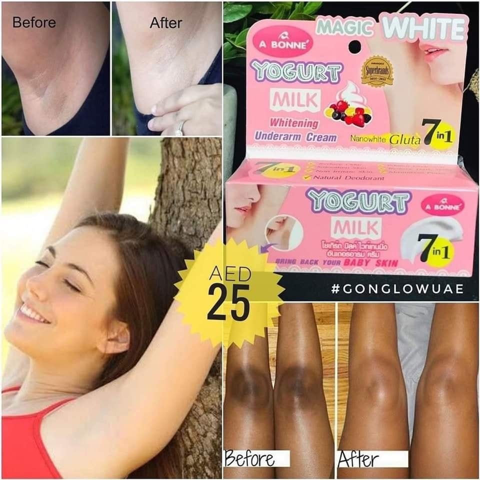A BONNE MAGIC WHITE YOGURT Milk Whitening Underarm Cream is a brand new high-quality product. It used for white the dark Underarm, dark Bikini Area, dark Inner Legs, dark Keen. It is a A BONNE