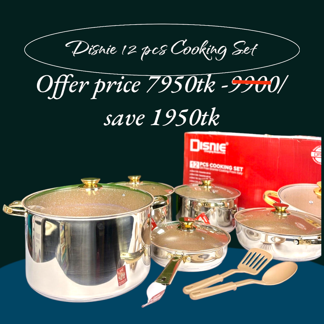 Disnie 12 pcs Cooking SetThis Disnie 12 pcs Cooking Set is perfect for your culinary needs. With its durable construction and versatile pieces, this set makes cooking easy and enjoyable. Made from high-quality materials, each piece offers superior performance for all your cooking tasks. Take your meals to the next level with this essential cooking set.