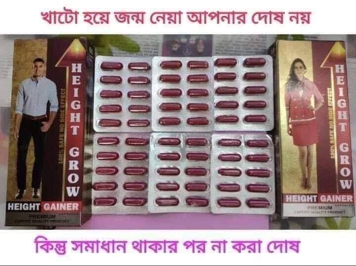 Height Gainer Capsule ব্যবহারে আপনিও হতে পারেন আরও ২-৩ ইঞ্চি লম্বা। ছেলে ও মেয়ে সবাই ব্যবহার করতে...