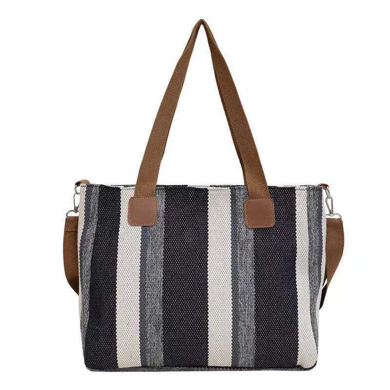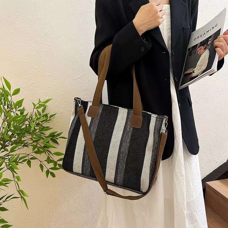 Long Shoulder Strap and Short Handle Shoulder Handbag Stylish Canvas Tote Bag With Top Zipper Closure