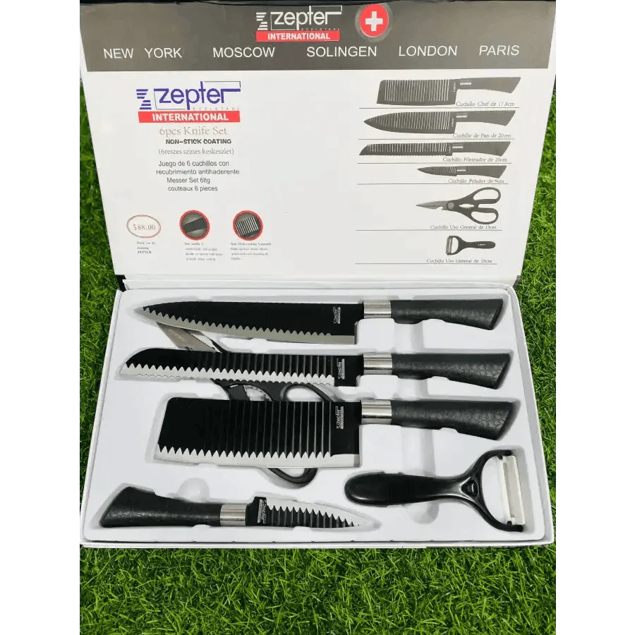 The Zepter 6 pcs knife set update model is expertly crafted with precision and functionality in mind. Made from the finest materials, these knives provide unparalleled sharpness and durability for all your slicing and dicing needs. With the latest model update, you can trust in their quality and performance for years to come